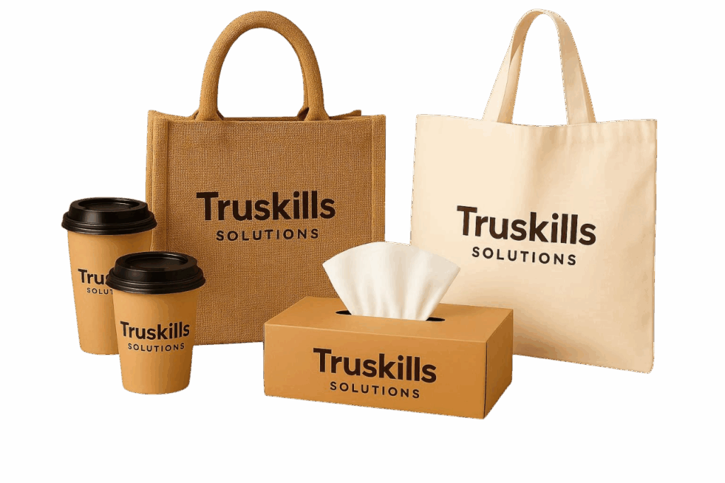 Based in India, Truskills Solutions bridges the gap between conscious Indian manufacturing and global sustainability needs. We specialize in eco-friendly paper cups, reusable cotton totes, natural jute bags, and biodegradable tissue papers — products crafted with care and responsibility toward the environment.
